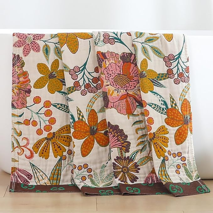 - [Pure Cotton Material]: Made from 100% high-quality organic cotton, our Fall Throw Blanket is 4-layer muslin and free of irritating chemicals, providing a soft, breathable touch suitable for all seasons. 80 x 90 inches, it's the ideal size for comfort.