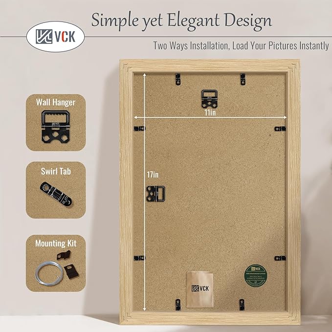 - Effortless Installation: Our picture poster frame comes with hanging hardware for both horizontal and vertical display. The unique spin-lock design allows for effortless loading of 11x17 or 17x11 photos, prints, diplomas, puzzles, or art