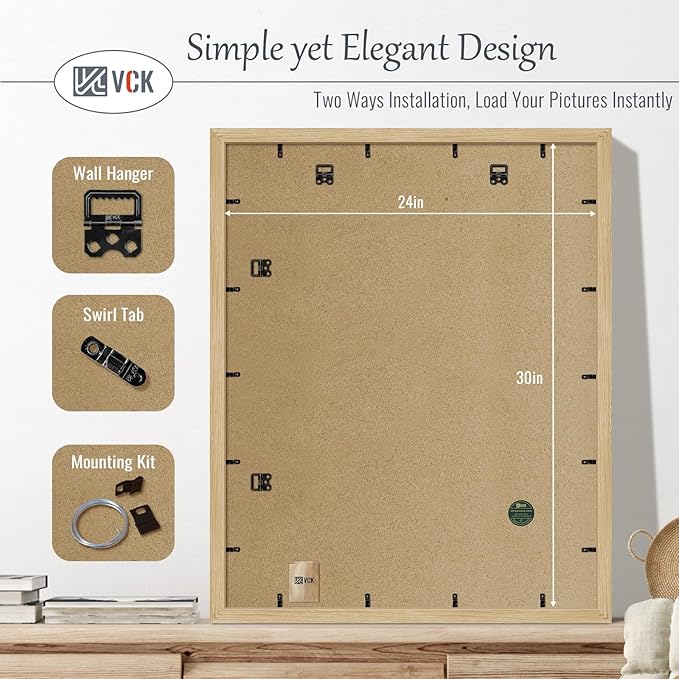 - Effortless Installation: Our picture poster frame comes with hanging hardware for both horizontal and vertical display. The unique spin-lock design allows for effortless loading of 24x30 or 30x24 photos, prints, diplomas, puzzles, or art