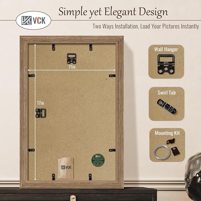 - Effortless Installation: Our picture frame comes with hanging hardware for both horizontal and vertical display. The unique spin-lock design allows for effortless loading of 11x17 or 17x11 photos, prints, diplomas, puzzles, or art