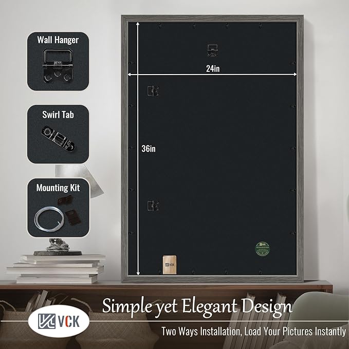 - Effortless Installation: Our poster frame comes with hanging hardware for both horizontal and vertical display. The unique spin-lock design allows for effortless loading of 24x36 or 36x24 photos, prints, diplomas, puzzles, or art