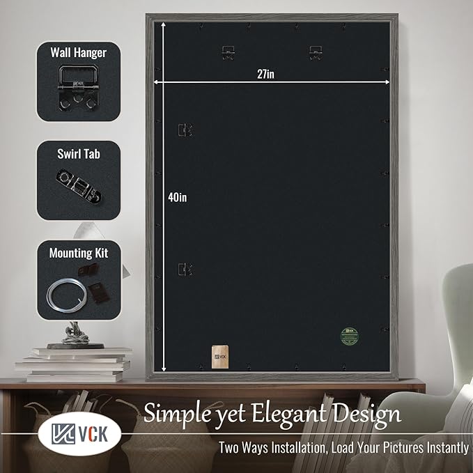 - Effortless Installation: Our poster frame comes with hanging hardware for both horizontal and vertical display. The unique spin-lock design allows for effortless loading of 27x40 or 40x27 photos, prints, diplomas, puzzles, or art