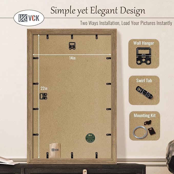- Effortless Installation: Our poster frame not only comes with hanging hardware for both horizontal and vertical display, but also features a unique spin-lock design. Allows for easy loading of 14x22 or 22x14 photos, prints, diplomas, puzzles, or art