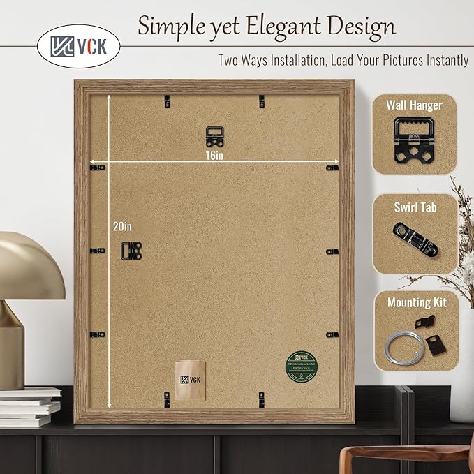 - Effortless Installation: This poster frame comes with hanging hardware for both vertical and horizontal display and features a unique spin-lock design for easy loading of 16x20 or 20x16 photos, prints, diplomas, puzzles, art, and more