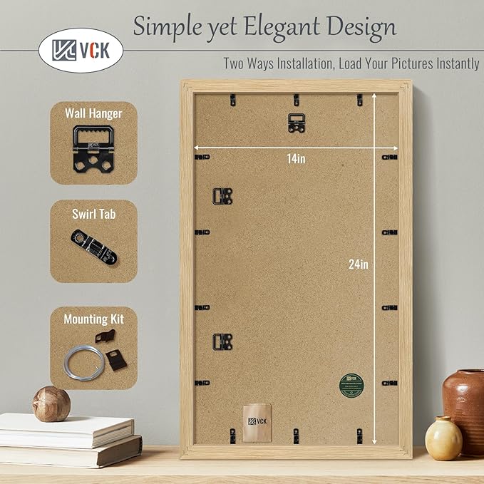 - Effortless Installation: This poster picture frame comes with hanging hardware for both vertical and horizontal display and features a unique spin-lock design for easy loading of 14x24 or 24x14 photos, prints, diplomas, puzzles, art, and more
