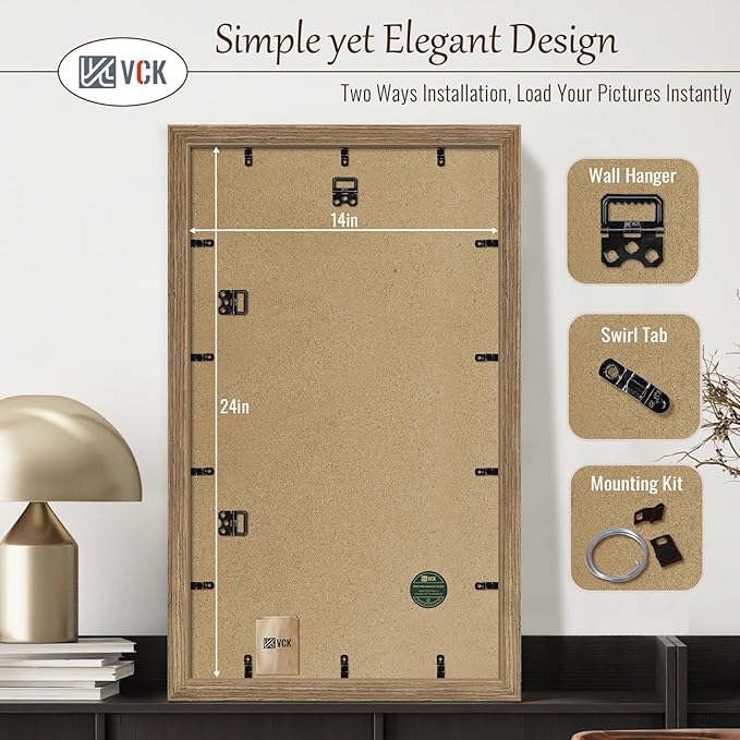 - Effortless Installation: This poster frame comes with hanging hardware for both vertical and horizontal display and features a unique spin-lock design for easy loading of 14x24 or 24x14 photos, prints, diplomas, puzzles, art, and more