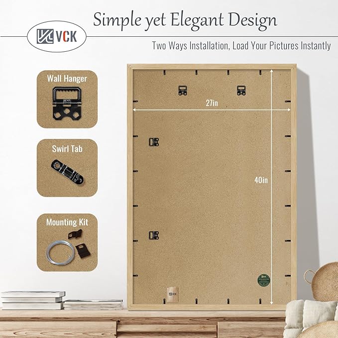 - Effortless Installation: Our picture poster frame comes with hanging hardware for both horizontal and vertical display. The unique spin-lock design allows for effortless loading of 27x40 or 40x27 photos, prints, diplomas, puzzles, or art