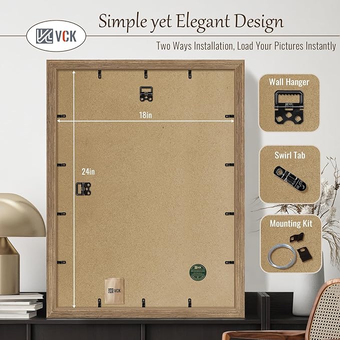- Effortless Installation: Our picture frame comes with hanging hardware for both horizontal and vertical display. The unique spin-lock design allows for effortless loading of 18x24 or 24x18 photos, prints, diplomas, puzzles, or art