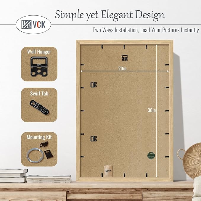 - Effortless Installation: Our picture poster frame comes with hanging hardware for both horizontal and vertical display. The unique spin-lock design allows for effortless loading of 20x30 or 30x20 photos, prints, diplomas, puzzles, or art