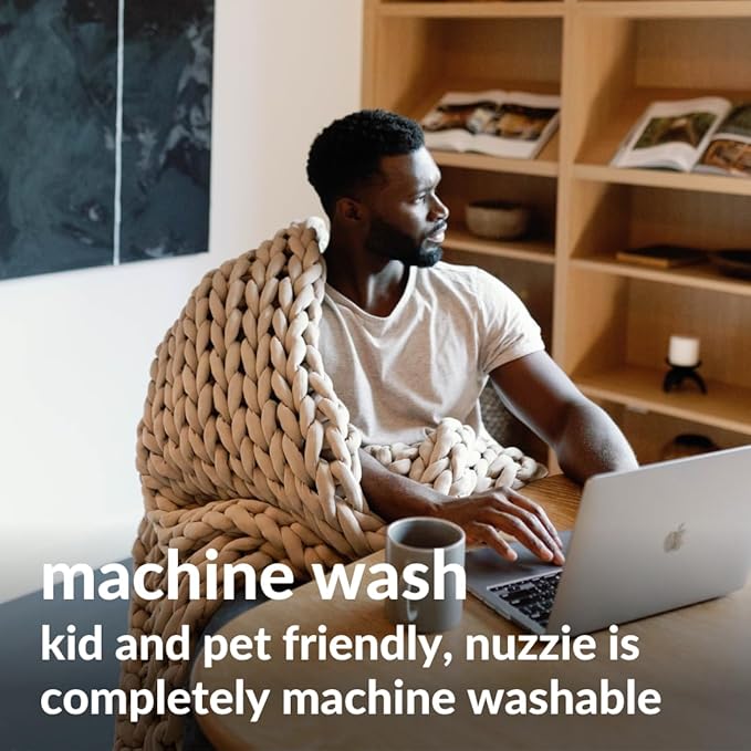 - HASSLE FREE CARE: Your Nuzzie chunky throw blanket isnβt just comfortable; it's also easy to maintain. Designed for durability, it retains its fresh look wash after wash, ensuring it remains as inviting as the day you first received it.