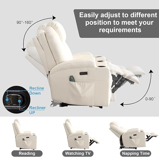 - Power Recline: This recliner can function as a versatile lounge chair for daily relaxation and as a luxurious home theater seat. With an electric button for smooth reclining between 100° to 150°, feature ensures effortless operation for users of all ages