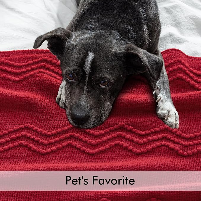MIULEE Red Knitted Throw Blanket for Couch Boho Textured Cozy Woven Blanket with Tassels for Sofa Chair Bed Living Room Acrylic Wave Pattern 50"x60"