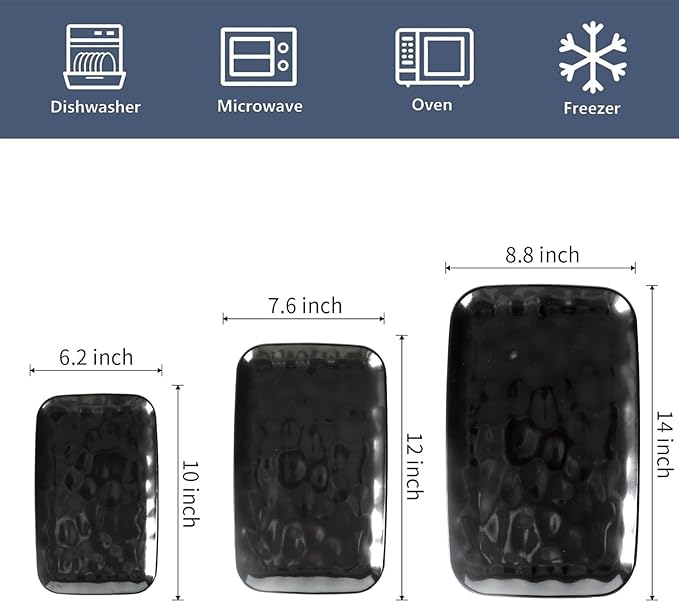 - 3 DIFFERENT SIZE: 14/12"/10", serving a variety of food, the serving platters meet your differentneeds, ideal for serving sushi, meats, steaks, cupcakes, appetizers, desserts, ect. Suitable for anyoccasions: family dinner, wedding, birthday, party, Christmas, Thanksgiving or daily use.