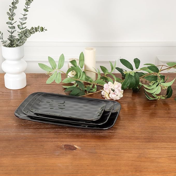 vicrays Ceramic Rectangle Serving Platters - 14" 12" 10" Porcelain Serving Trays Plates for Party BBQ Appetizers Sushi Dessert - Microwave Oven and Dishwasher Safe - Set of 3 Bright Black