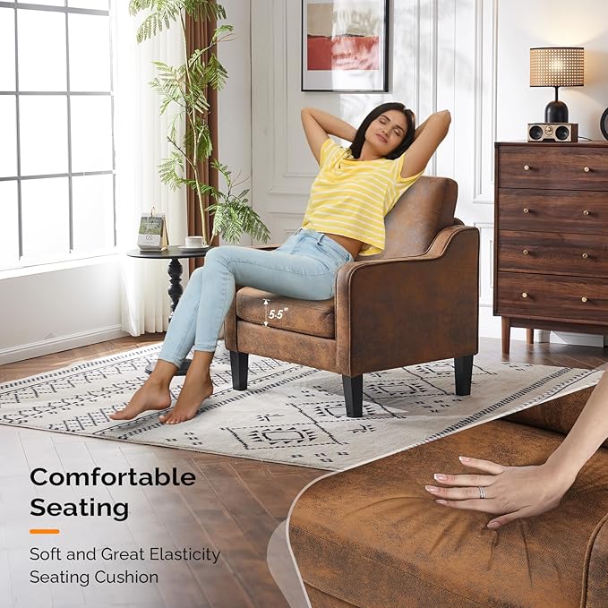 - Home Accent Essential--Our armchair features a minimalistic yet midcentury-style silhouette, making it a timeless piece that fits into most decor styles. Its comfort and style make it perfect for your living room, bedroom, apartment, upstairs loft, cozy nook, or office space.