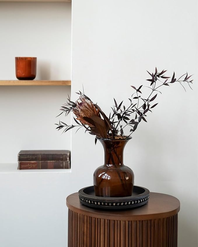 - Stylish Design: The classic round shape, beaded design and natural wood finish of this wood tray complement any decor style. Whether you're looking to add a touch of sophistication to your living space or simply want a functional yet stylish piece, this decor tray fits the bill.