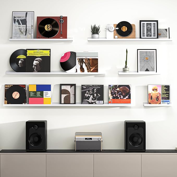 - Picture ledge Shelf for Walls: If you have dozens of pictures but don't know how to display them, Heimlove picture ledge shelves(especially large size) for walls are perfect! With our hanging shelves, store and display different types and sizes of photo frames in one place. The ledge in front of the wall shelves could prevent your precious items from falling off.