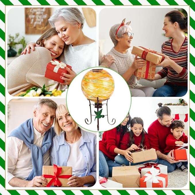 - Solar Power: The glass ball uses solar energy to charge during the day in sunlight and automatically lights up at night.Enjoy the soothing orange hues of this glass garden sphere.The colorful and mysterious patterns make the glass ball look like a planet,suitable for garden decor,porch decor,yard decor,pathway decor,and indoor decor placed on the ground