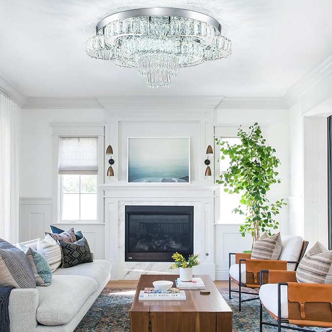 - -Wide Application: itβs perfect to put this flush mount chandelier in large space or low ceiling such as your living room, dinning room, kitchen, bedroom, closet, foyer, porch, farmhouse, hallway, hall, study etc.
