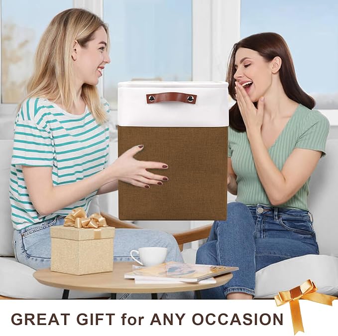 Large Fabric Storage Baskets | 50L Storage Bins, Decorative Linen Closet Baskets with Handles for Organizing, Shelf, Toys, Clothes, Home, Office, Nursery, 17x12x15Inches (Brown&White)