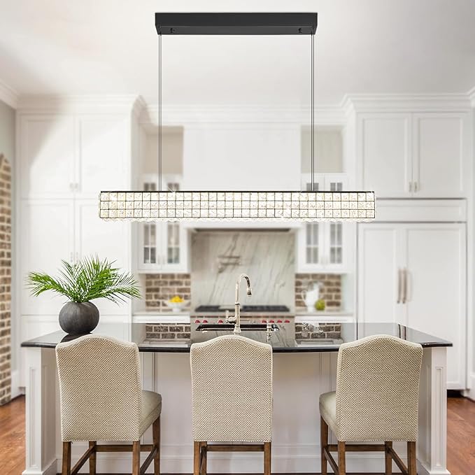 Rectangle Crystal Chandelier Modern Crystal Chandelier Black Rectangular Pendant Lighting Fixture for Dining Room Kitchen Island Bedroom (L 40")
