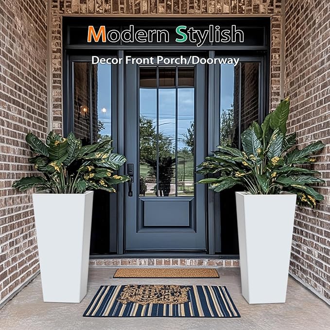 Tall Planters for Outdoor Plants, Large Resin Flower Pots for Garden, Front Porch, Patio, Indoor - Set of 2 (White, 32 inch - 2 Pack)