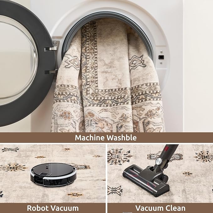 - Easy Care: To maintain washable rugs, regularly vacuum to remove dust and dirt. Carpet for bedroom is machine washable; simply use warm water below 40Β°C and a mild detergent or carpet cleaner if necessary. If the vintage rug is exposed to direct sunlight, rotate it periodically to promote even fading over time.