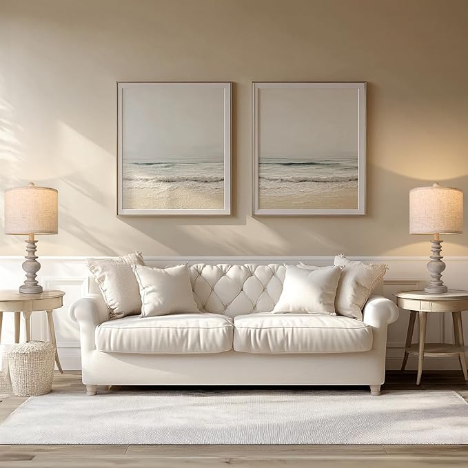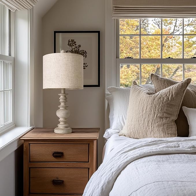 BOBOMOMO Tradition 20" Rustic Table Lamp Set of 2 for Living Room Bedroom Bedside Desk Lamps Bedroom Nightstand Vintage Lamps Linen(Suitable for Decorating Small Areas)