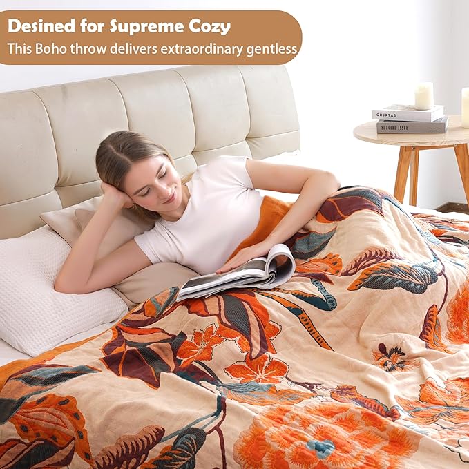 - PREMIUM 100% COTTON CONSTRUCTION: Crafted with exclusive 4-layer breathable cotton fibers in pure natural structure, premium cotton that delivers a baby-soft Class A texture,our boho throw blanket ensures superior softness & temperature regulation. Measuring 60" x 80" 2.2lb