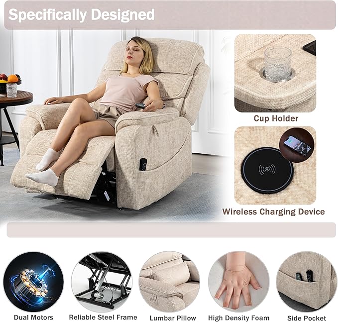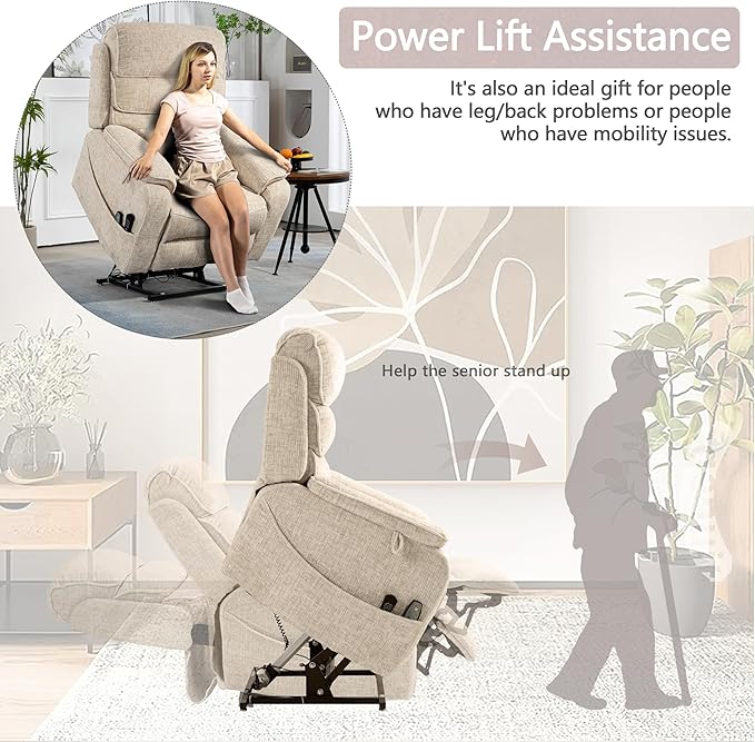 - 【Power Lift Assistance】Excellent lift chairs for elderly and adults. Counter-balanced lift mechanism to assist the senior stand up easily, smoothly adjust to lift or reclining position you prefer by pressing buttons (Recliner chair max reclining angle: 180°). It's an ideal gift for people who have mobility issues,looking for extra comfort.