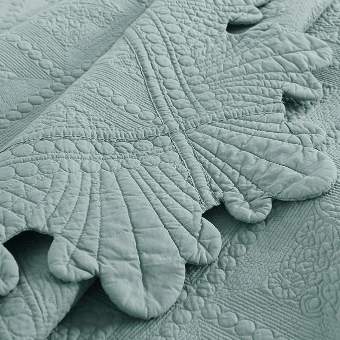MarCielo 3-Piece 100% Cotton Oversized Bedspread Lightweight Quilt Coverlet Embroidery Farmhouse Bedding Set (Tk Aqua Green, Oversized Queen (100"x106"))