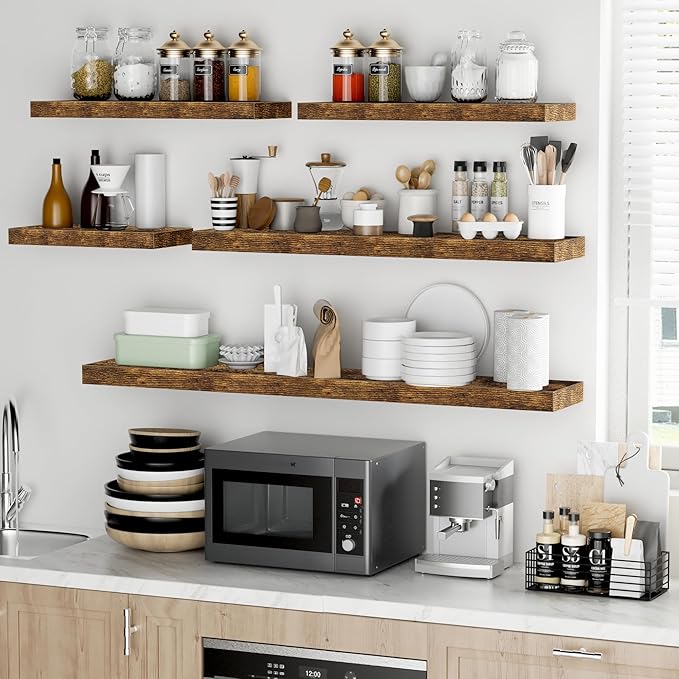 - Rustic & Modern Wooden Floating Shelves: Crafted from durable engineered wood with a realistic wood grain finish, our floating shelves offer the perfect blend of rustic charm and modern minimalism. The matte surface enhances its sleek, contemporary look, making it ideal for any room in your home. Whether you want to display your collection or organize essentials, these wall shelves seamlessly integrate with any dΓ©cor and can be mounted on any wall to elevate your living space.