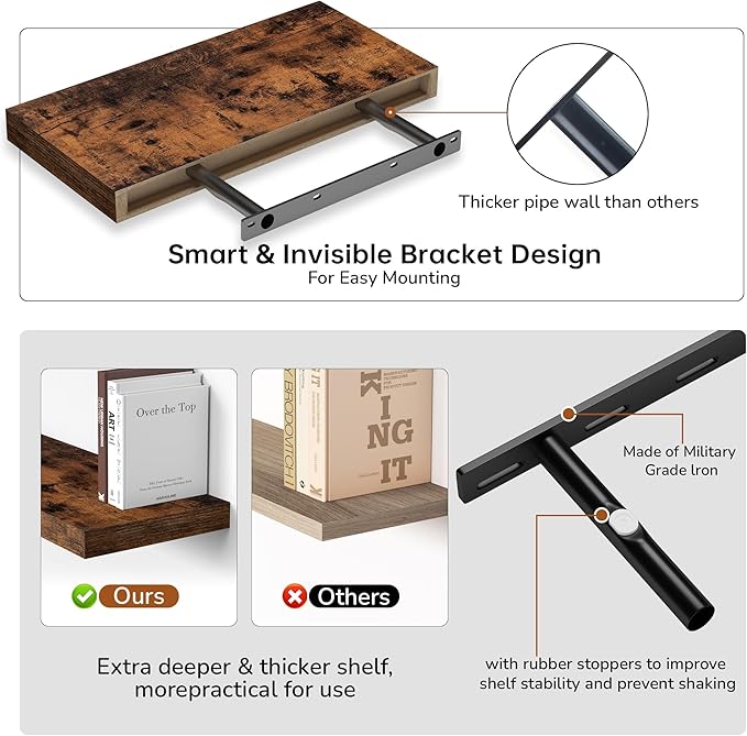 - Easy to Assemble & Install: Each shelf comes with everything you need for quick and easy assembly: durable steel invisible brackets, toggle bolts for drywall, and a straightforward instruction manual. With just one or two boards and a few screws, you can have the shelf up in no time. The included step-by-step instructions make the installation process hassle-free, and our customer support team is always available if you need assistance.