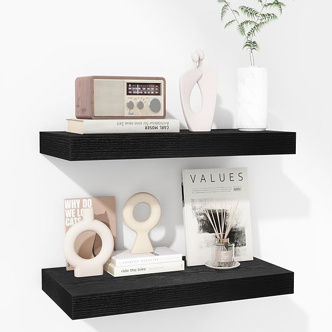 - Rustic & Modern Wooden Floating Shelves: Crafted from durable engineered wood with a realistic wood grain finish, our floating shelves offer the perfect blend of rustic charm and modern minimalism. The matte surface enhances its sleek, contemporary look, making it ideal for any room in your home. Whether you want to display your collection or organize essentials, these wall shelves seamlessly integrate with any dΓ©cor and can be mounted on any wall to elevate your living space.