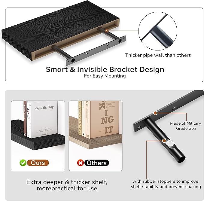 - Easy to Assemble & Install: Each shelf comes with everything you need for quick and easy assembly: durable steel invisible brackets, toggle bolts for drywall, and a straightforward instruction manual. With just one or two boards and a few screws, you can have the shelf up in no time. The included step-by-step instructions make the installation process hassle-free, and our customer support team is always available if you need assistance.