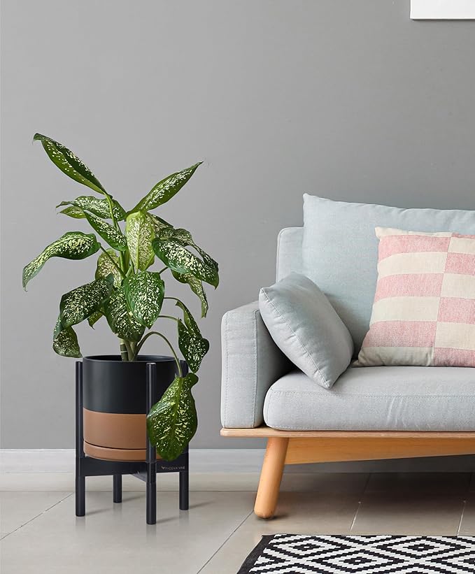- A Complete Set: Mid-century ceramic planter, combined with a ebony wood stand that match perfectly together and looks great in anywhere.