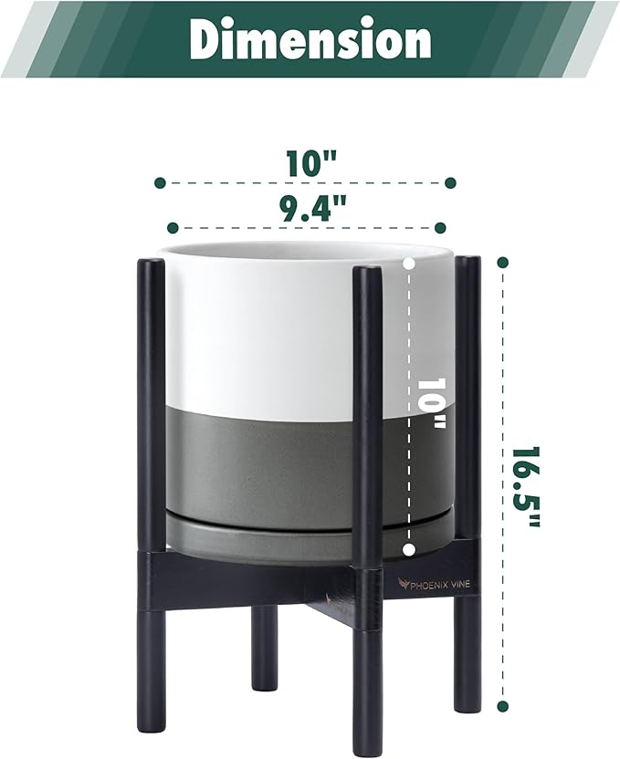 - 10 Inch Pot with Stand Set: Planter size: 10"Diameter x 10"H; pot with stand total height: 16.5 inch.