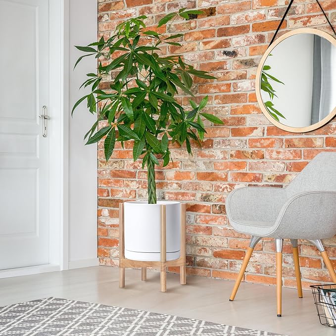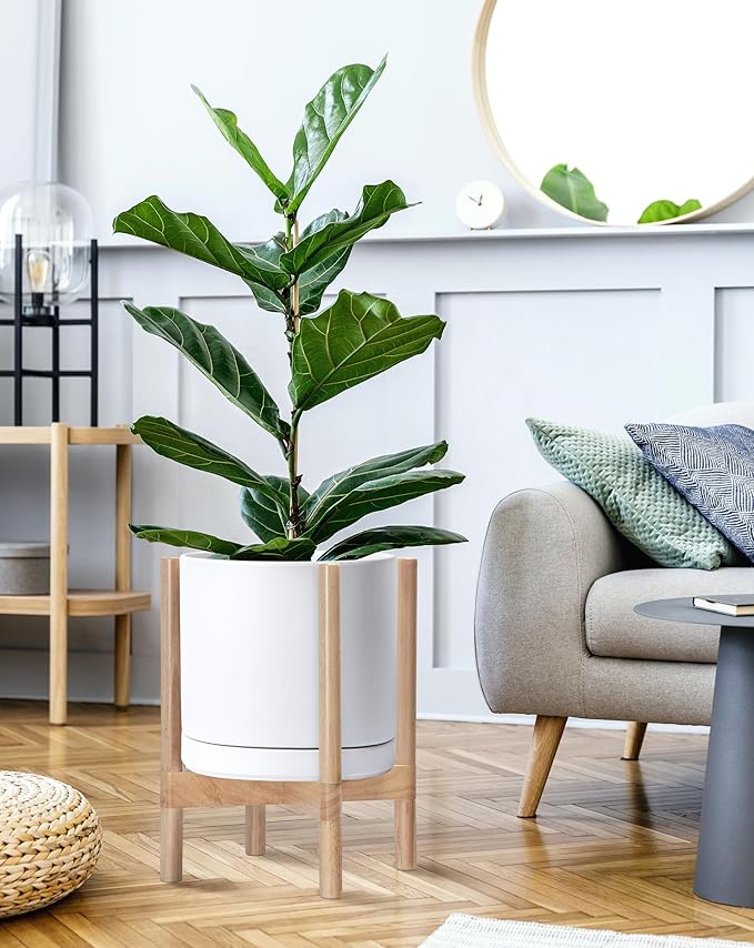 - A Complete Set: Mid-century ceramic planter, combined with a natural color, sculptural, solid wood stand that match perfectly together and looks great in anywhere.