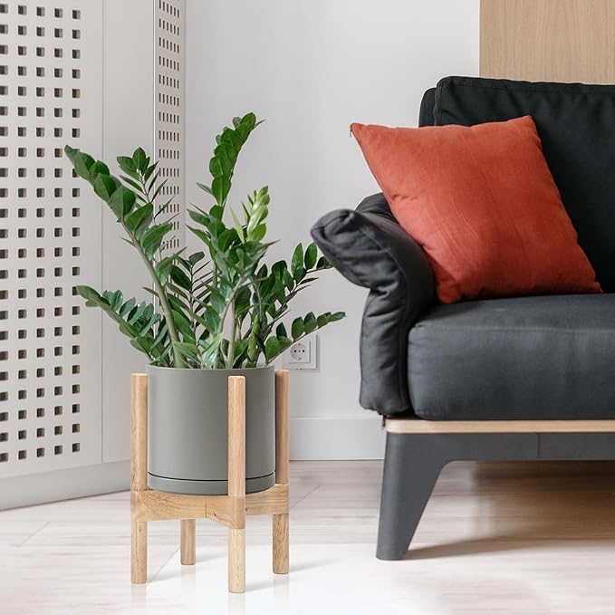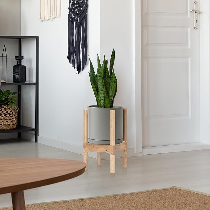 - A Complete Set: Mid-century ceramic planter, combined with a natural color, sculptural, solid wood stand that match perfectly together and looks great in anywhere.