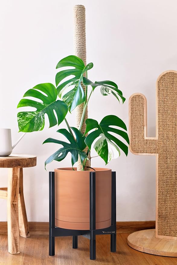 - A Complete Set: Mid-century terracotta planter, combined with a ebony wood stand that match perfectly together and looks great in anywhere.