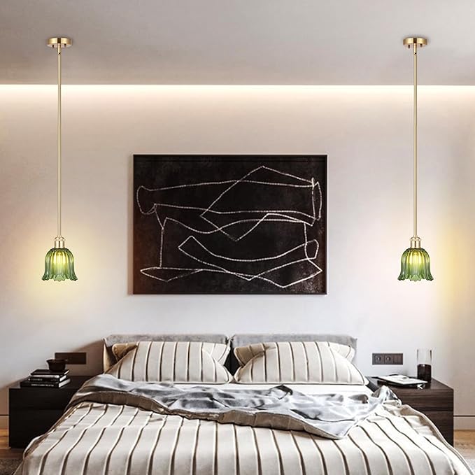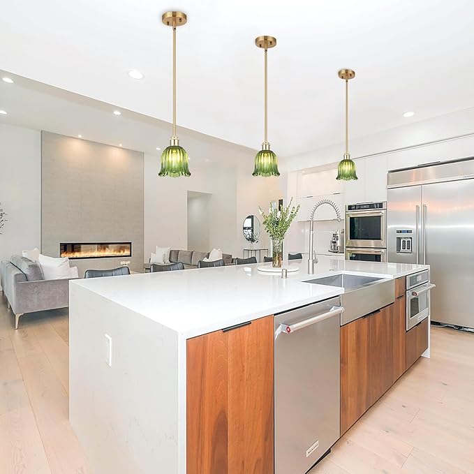 - 【3 Pack Green Tone Pendant Light】Using classic thickened green glass material lampshades, which provide excellent light transmission to illuminate various spaces in your home,not only brings a touch of vitality and energy to the indoor space,but also creates a nostalgic and retro atmosphere,Perfect for mid-century decoration styles and combines the contemporary and vintage style.