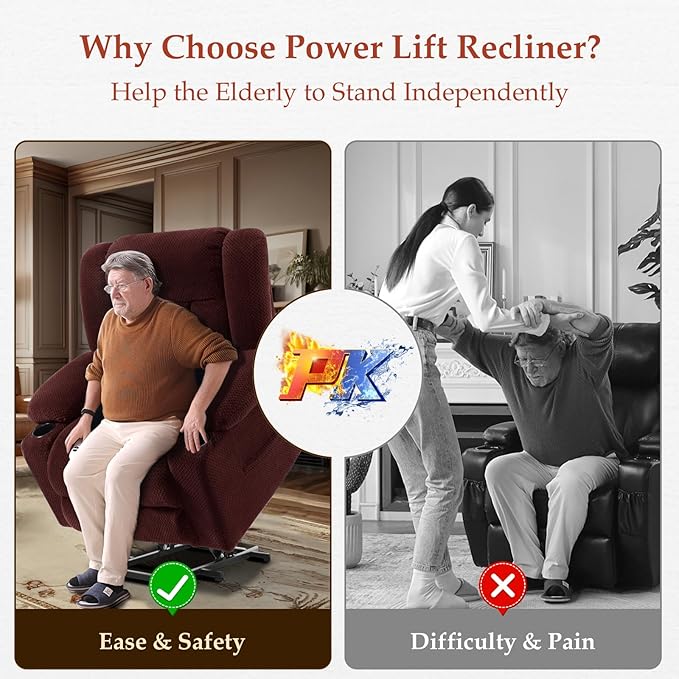 - Power Lift Assist: Our lift chairs is designed for the comfort and well-being of the elderly, disabled, recovering. It lifts to a near-standing position with a smooth and steady motion, reducing strain on muscles and joints. More than just a power lift recliner, it enhances independence