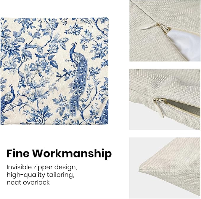 - 【Spring Pillow Covers】 Our Chinoiserie floral throw pillow covers 18x18 inch are made of excellent breathable polyester cotton fabric. The navy blue floral decorative pillow covers is sturdy, soft and skin-friendly. The outdoor pillow covers adopt exquisite edging technology and four sides of our floral pillow covers are sewn firmly, which is not easy to open the line.