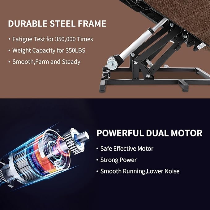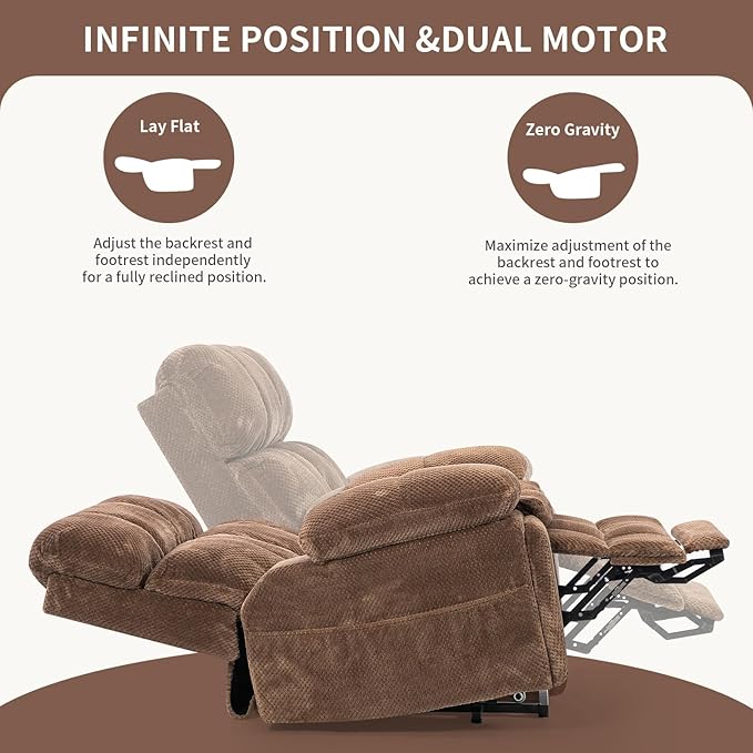 - Dual-Motor Lift Chair for Elderly:Dual-motor structure, enabling the backrest and footrest to be adjusted independently in position.The power lift recliner adjusts to any angle between 105°-170° with an easy-to-use remote control. Its counter-balanced lift mechanism gently lifts the chair to help seniors stand without straining their knees or back.