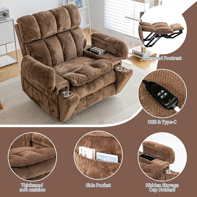 - Hidden Armrest Storage and Cup Holders: Both armrests feature flip-open storage for easy access to books, phones, and more. Each armrest also includes a stainless steel cup holder, resistant to heat and rust, for added convenience