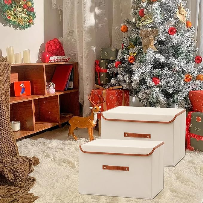 - Multi-purpose Storage Baskets: These stylish storage bins with lids are perfect for organizing and storing seasonal clothing, shoes, pet supplies, toiletries, sports equipment, and office essentials. Their large, collapsible design fits seamlessly into any spaceβwhether it's the living room, bedroom, closet, dorm, bathroom, utility room, under the bed, office, or even the hallway. They also make a fantastic gift for back-to-school or holiday occasions!