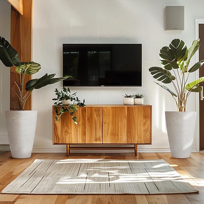 - LARGE TREE PLANTER - This spacious indoor set of 2 planters give you more creative freedom for your different gardening needs. You will love them showcasing large plants such as a snake plant, spider plant, monstera, philodendron, ficus, or other small trees in your front door entrance, living room, or office. Size:13.8β(D)x 20β(H). Soil Capacity: 7.7 gallon per planter. (Plants are not included)