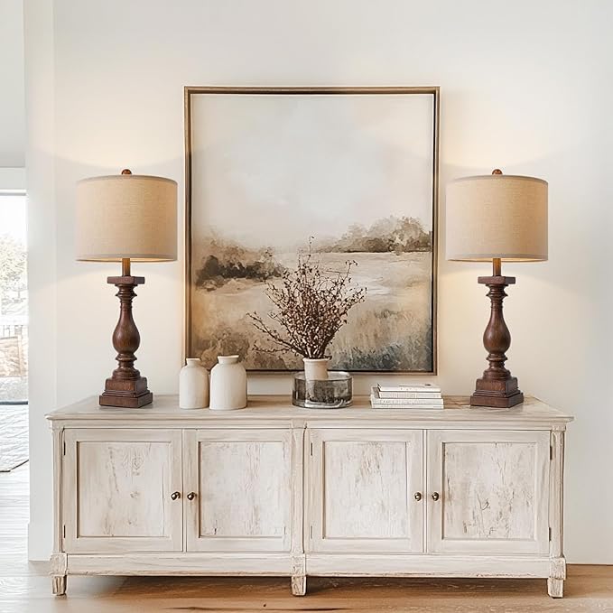 - 【Timeless Design & Versatile Use】BOBOMOMO 27" farmhouse table lamps in an antique brown hue seamlessly integrates into traditional or modern settings, adding a touch of timeless sophistication to your home decor. The durable resin material ensures they'll stand the test of time, and the linen lampshades offer cozy ambiance, perfect for living rooms, bedrooms, entryway, or offices.