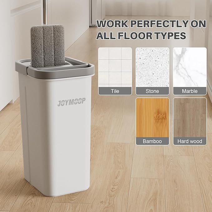 - It's easier and much more efficient to use JOYMOOP's flat mop with it's specified JOYMOOP's buckets together