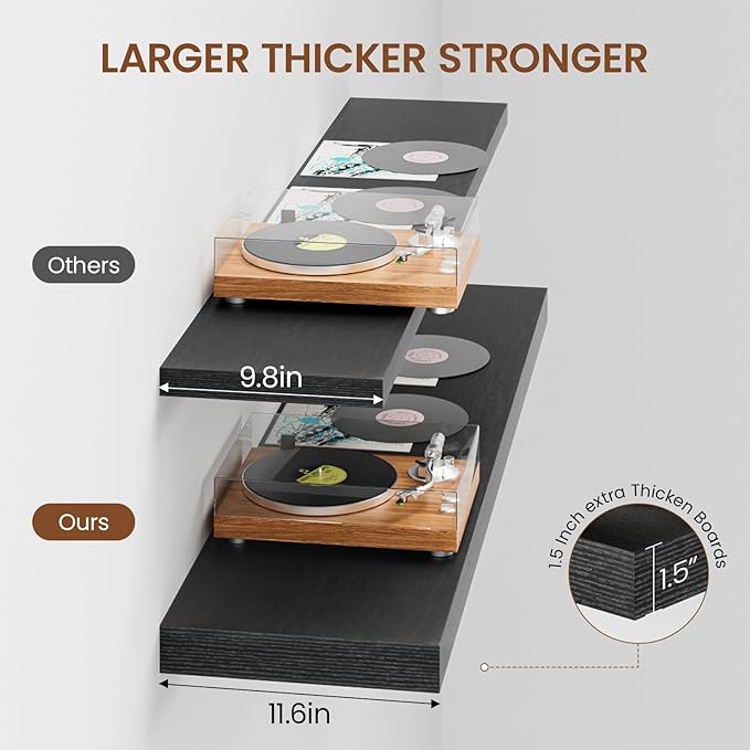 - Extra Deep Floating Shelves: Measuring 11.6” D x 47.2” W x 1.5” H, these shelves are crafted for maximum depth and durability. The spacious 12” depth gives you plenty of room for stylish display, organized storage, and decorative accents. Perfectly suited for your bathroom, kitchen, or living room, they enhance both function and flair in any space!